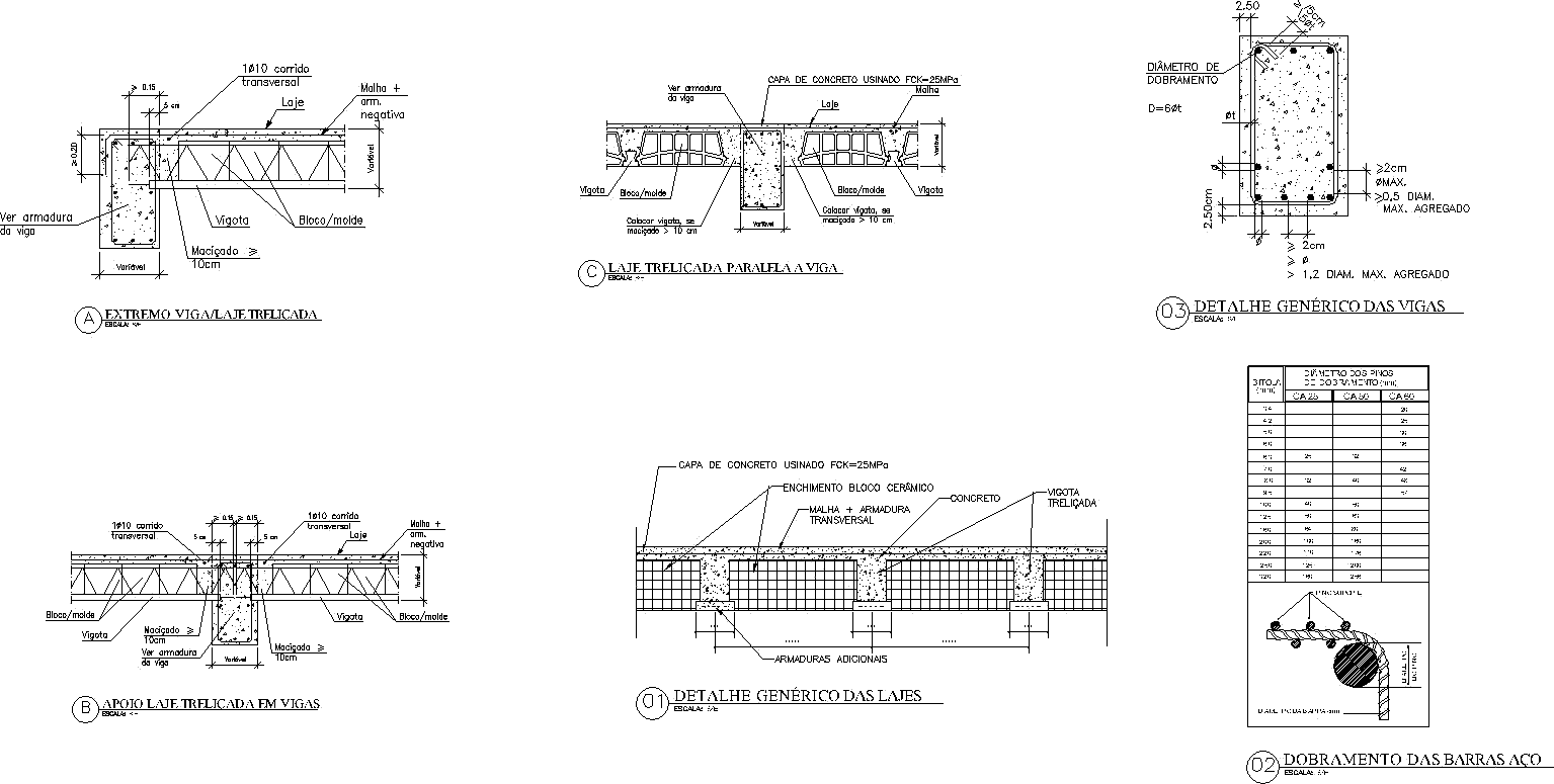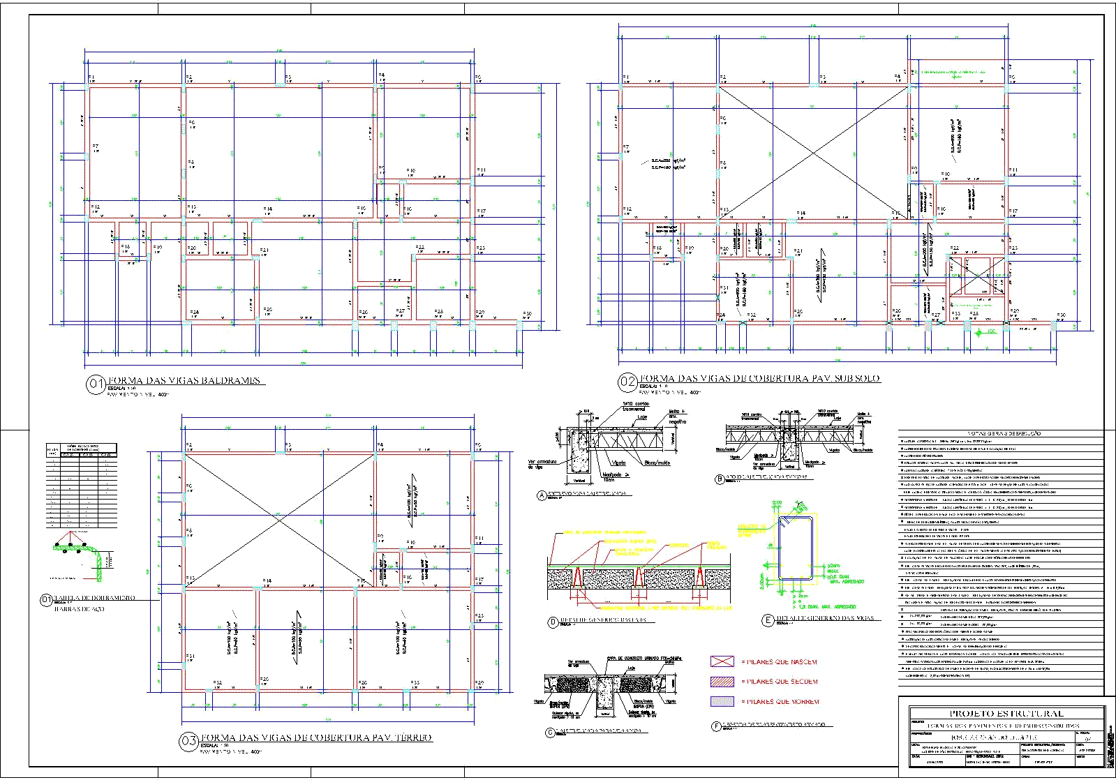 pranchas de formas das vigas baldrame/lajes de piso e cobertura |